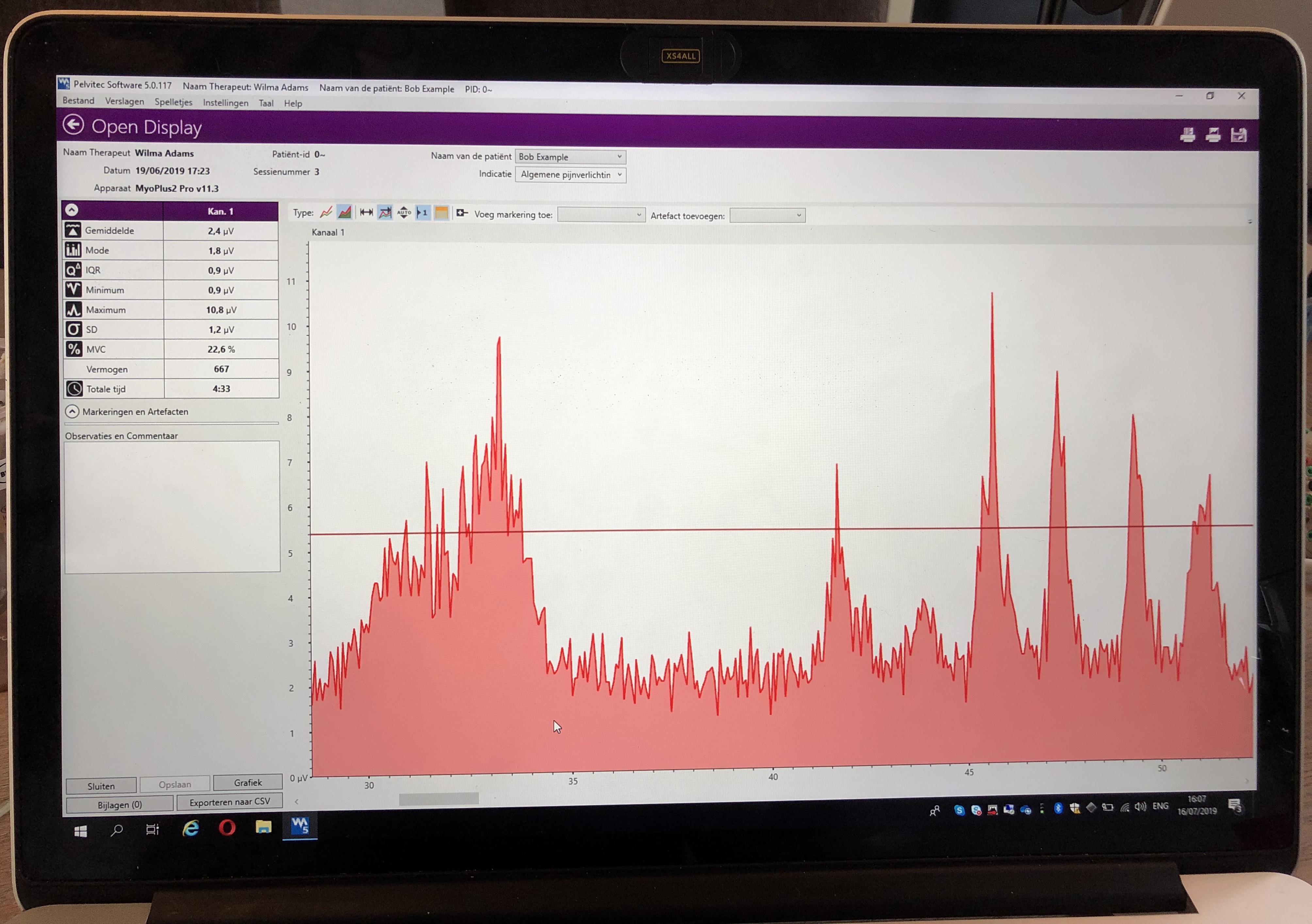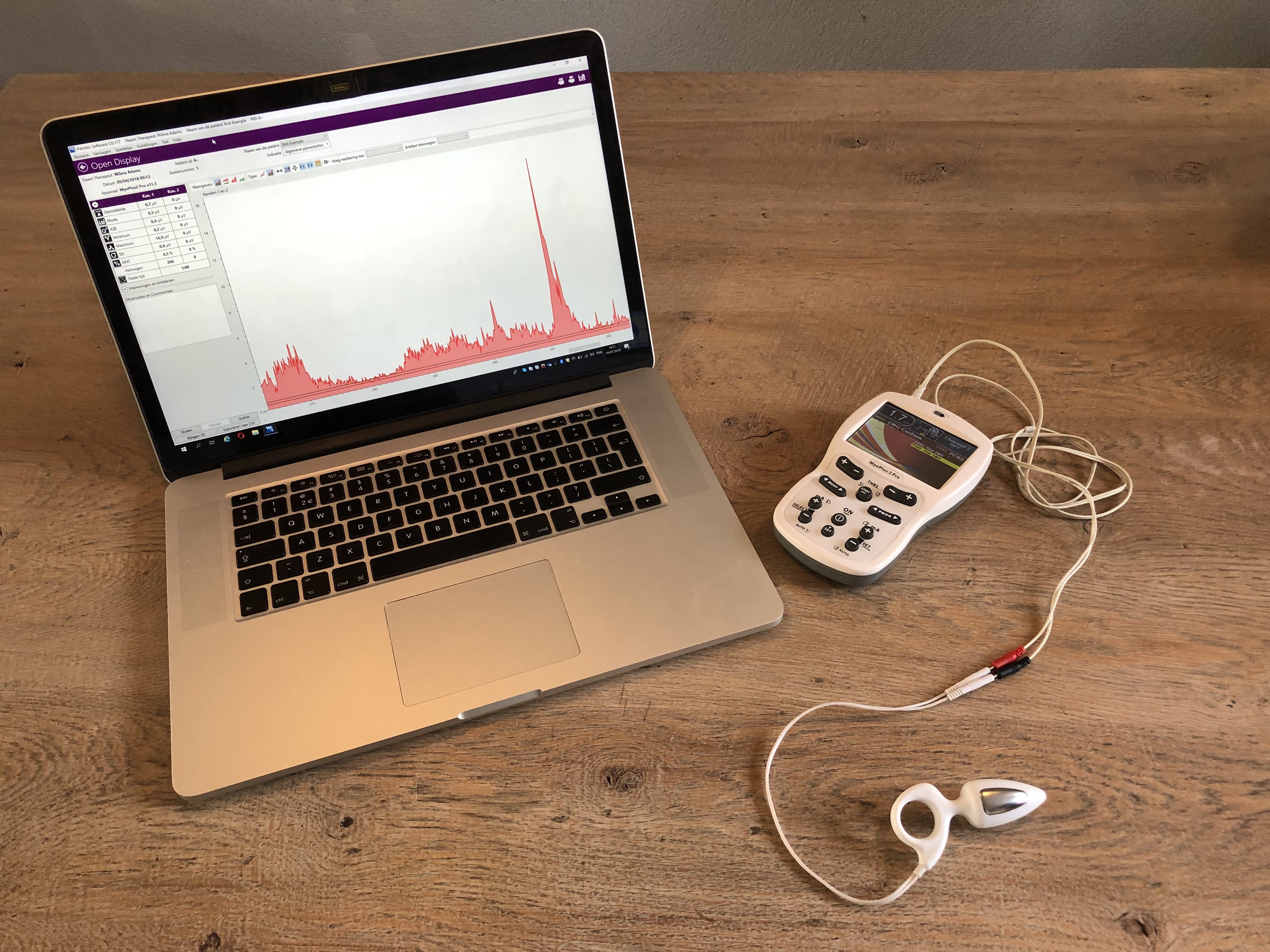 Hiervoor wordt een klein apparaatje (probe) in de vagina of anus ingebracht en aangesloten op de computer. De probe meet wat er gebeurt in uw bekkenbodem en u kunt nu meekijken op het beeldscherm. In een grafiek krijgt u dan informatie over