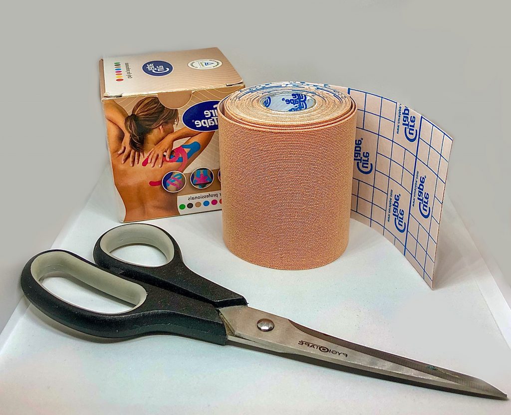 Medical tape kan helpen bij het ondersteunen van je spieren. Sommige mensen ervaren extra steun en stabiliteit waardoor het algemeen functioneren en de oefeningen makkelijker gaan. Medical tape is elastisch, waterproof en huidvriendelijk. En in tegenstelling tot de witte sporttape die voorheen veel gebruikt werd om enkels vast te zetten, beperkt deze tape geen beweging; oftewel je kan en mag alles blijven doen ondanks de tape, ook douchen.