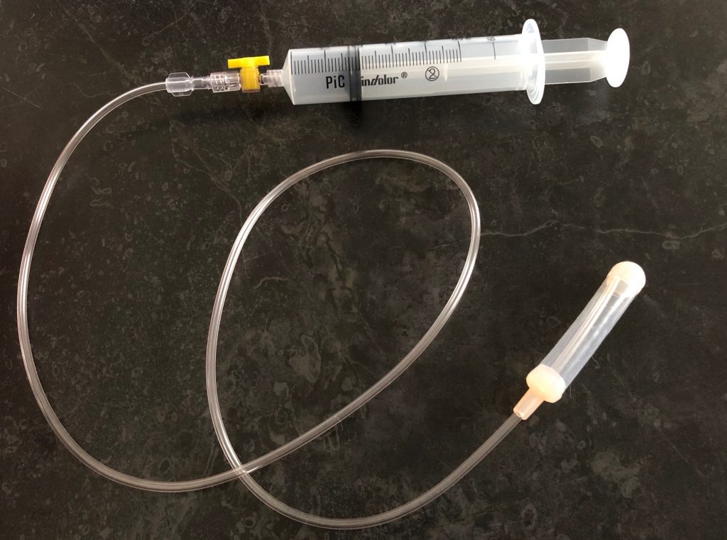 De ballon is van siliconen, erg flexibel en heeft ongevuld een vingerdikte doorsnede. Aan de ballon is een spuit bevestigd waarmee de ballon gevuld kan worden.